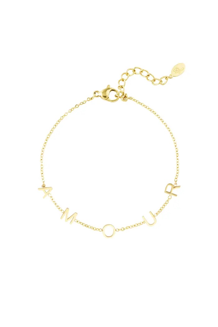 Leuke armband met letters: Amour. Staat bij elke kledingstijl, leuk te combineren.