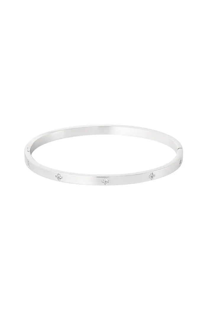 Mooie strakke slavenarmband, modern vormgegeven met zirkonia steentjes.